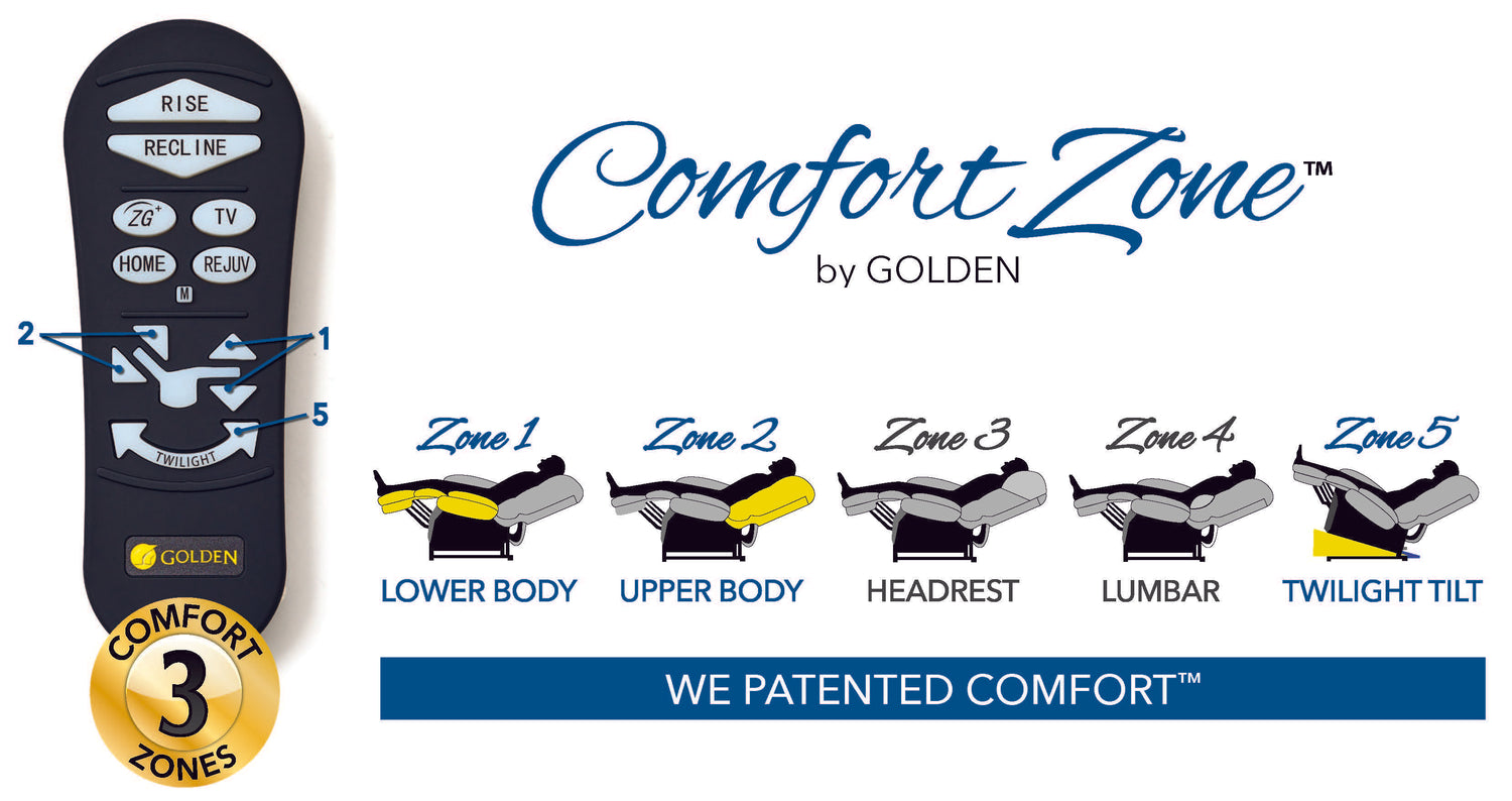 Comfort Zones 3 includes Twilight Tilt Position, upper and lower body zones to help maximize comfort. Each Comfort Zone can be adjusted independently by using the exclusive AutoDrive hand control.