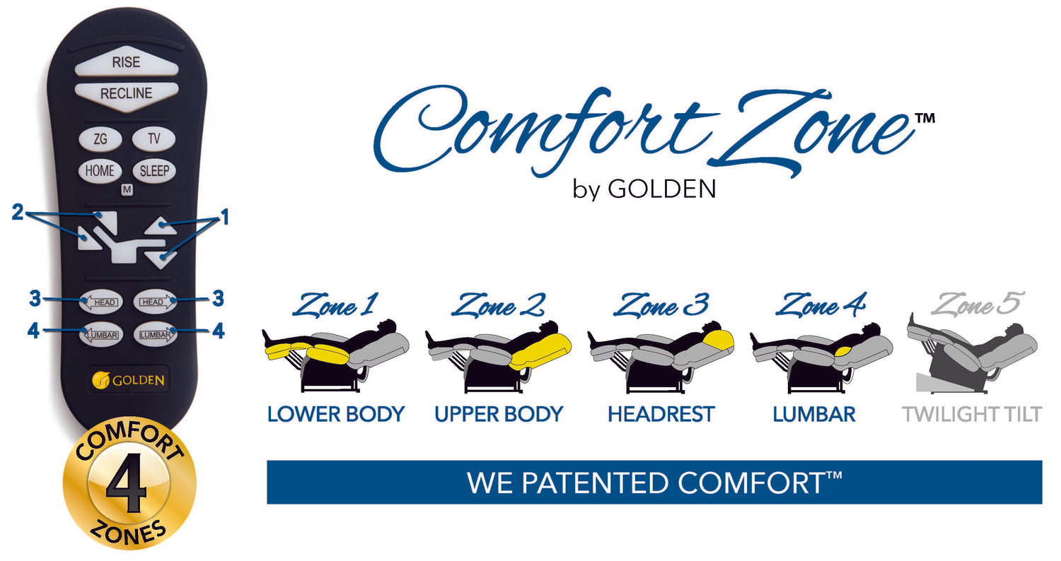 Comfort Zones 1 – 4 provide an ergonomic comfort experience with an emphasis on head and back support. Each Comfort Zone can be adjusted independently by using the exclusive AutoDrive hand control.